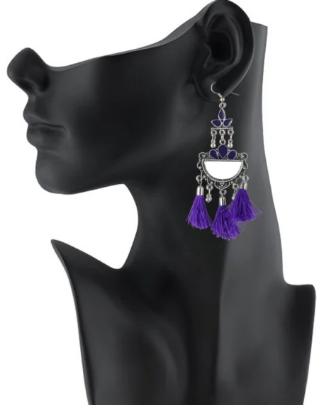 Generic Women's Silver Plated Afgani Tassel Earrings-Purple, Color: Purple, Material: Silver Plated, Style: Tassel Earrings, Fashion Earrings for all the occassions, Perfect for daily wear and festive occasion., It Is Advisable To Store Jewellery In A Zip Lock Pouch (Air Tight Pouch), Keep Away From Water Perfume And