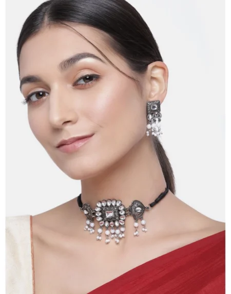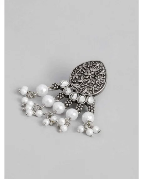 Women's Silver Color Oxidised Earrings • Color: Silver , • Metal: Alloy • Type: Earring, • Earring Length: 7.00 CM x Width: 5.00 CM • Care Instruction: Avoid Heat & Chemicals Like Perfume, Deo, Alcohol, Etc. • After Use Clean With Dry Cotton Cloth.• Disclaimer: The color of actual product may vary slightly from the images provided