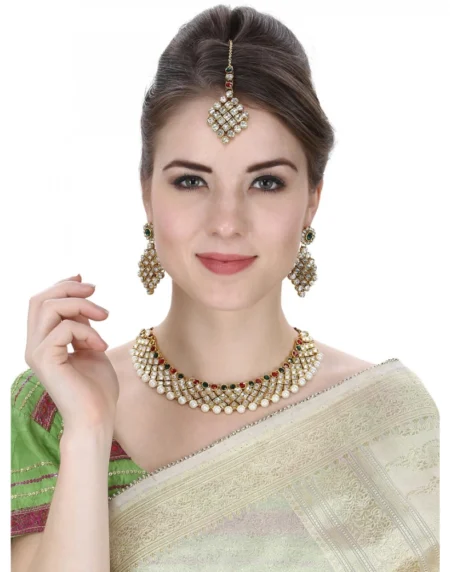 Gold Plated Traditional Kundan Necklace Set with Earrings and Maang Tikka, Material: Gold Plated, Color: Golden, Style: Necklace Set, Perfect kundan ethnic wear for wedding and other festive occasions, Perfect for daily wear and festive occasion. It Is Advisable To Store Jewellery In A Zip Lock Pouch (Air