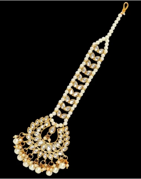Women's White Color Imitation Pearl & Kundan Maang Tikka • Color: White , • Metal: Alloy • Type: Maang Tikka, • Maang Tikka Length: 18.00 CM x Width: 4.30 CM • Care Instruction: Avoid Heat & Chemicals Like Perfume, Deo, Alcohol, Etc. • After Use Clean With Dry Cotton Cloth.• Disclaimer: The color of actual product may