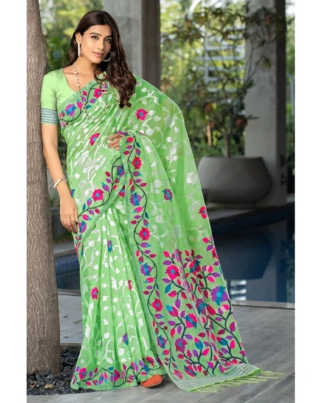 Women's Cotton Printed Saree With Unstitched Blouse Color: Green, Material: CottonPattern: PrintedBlouse: Unstitched Blouse, Gender: WomenDisclaimer: The color of actual product may vary slightly from the images provided due to photographic lighting conditions and difference in screen resolutions.