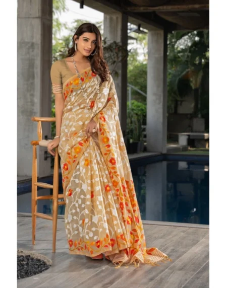 Women's Cotton Printed Saree With Unstitched Blouse• Material: Cotton, • Color: Beige• Pattern: Printed, • Blouse: With Blouse• Gender: Women• Disclaimer: The color of actual product may vary slightly from the images provided due to photographic lighting conditions and difference in screen resolutions.