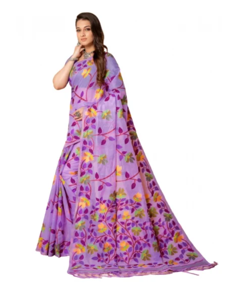 Generic Women's Cotton Printed Saree With Unstitched Blouse (Lavender, 5-6 Mtrs)
