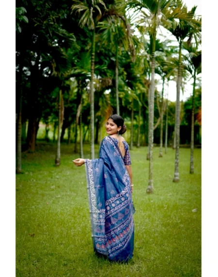 Women's Cotton Printed Saree With Unstitched Blouse Color: Blue, Material: CottonPattern: PrintedBlouse: Unstitched Blouse, Gender: WomenDisclaimer: The color of actual product may vary slightly from the images provided due to photographic lighting conditions and difference in screen resolutions.