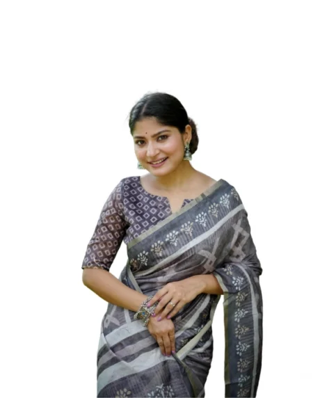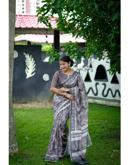 Women's Cotton Printed Saree With Unstitched Blouse Color: Grey, Material: CottonPattern: PrintedBlouse: Unstitched Blouse, Gender: WomenDisclaimer: The color of actual product may vary slightly from the images provided due to photographic lighting conditions and difference in screen resolutions.