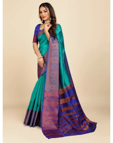 Women's Organza Woven Saree With Unstitched Blouse• Color: Green-Blue, • Material: Organza• Pattern: Woven , • Blouse Pattern: Self Design• Blouse: Unstitched Blouse, Gender: Women• Disclaimer: The color of actual product may vary slightly from the images provided due to photographic lighting conditions and difference in screen resolutions.