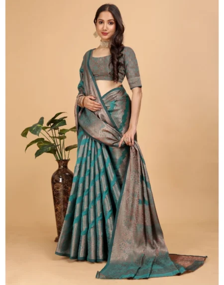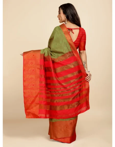 Women's Organza Woven Saree With Unstitched Blouse• Color: Green, • Material: Organza• Pattern: Woven , • Blouse Pattern: Self Design• Blouse: Unstitched Blouse, Gender: Women• Disclaimer: The color of actual product may vary slightly from the images provided due to photographic lighting conditions and difference in screen resolutions.