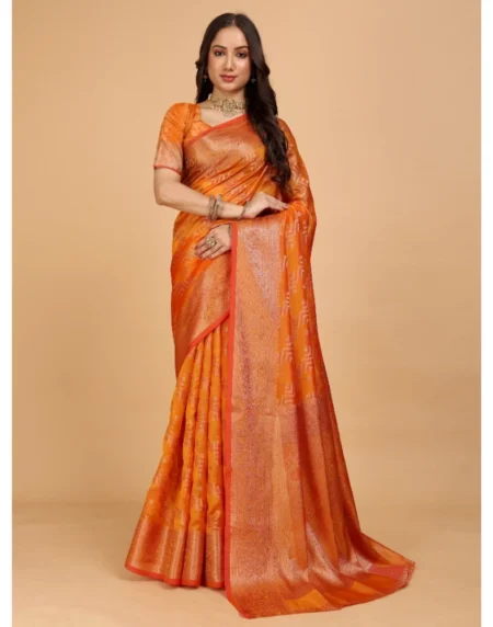 Women's Organza Woven Saree With Unstitched Blouse• Color: Mustard, • Material: Organza• Pattern: Woven , • Blouse Pattern: Self Design• Blouse: Unstitched Blouse, Gender: Women• Disclaimer: The color of actual product may vary slightly from the images provided due to photographic lighting conditions and difference in screen resolutions.