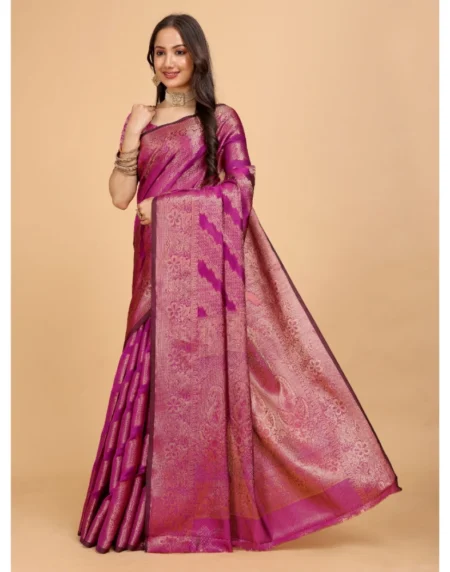 Women's Organza Woven Saree With Unstitched Blouse• Color: Magenta, • Material: Organza• Pattern: Woven , • Blouse Pattern: Self Design• Blouse: Unstitched Blouse, Gender: Women• Disclaimer: The color of actual product may vary slightly from the images provided due to photographic lighting conditions and difference in screen resolutions.