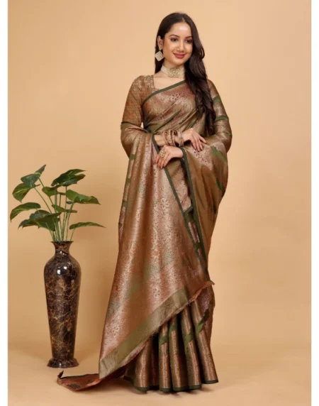 Women's Organza Woven Saree With Unstitched Blouse• Color: Light-Green-Gold, • Material: Organza• Pattern: Woven , • Blouse Pattern: Self Design• Blouse: Unstitched Blouse, Gender: Women• Disclaimer: The color of actual product may vary slightly from the images provided due to photographic lighting conditions and difference in screen resolutions.
