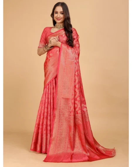 Women's Organza Woven Saree With Unstitched Blouse• Color: Pink, • Material: Organza• Pattern: Woven , • Blouse Pattern: Self Design• Blouse: Unstitched Blouse, Gender: Women• Disclaimer: The color of actual product may vary slightly from the images provided due to photographic lighting conditions and difference in screen resolutions.