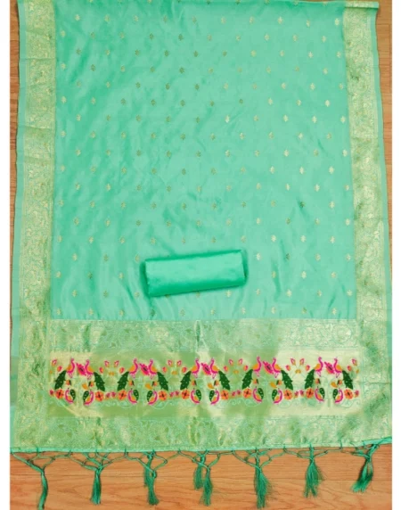 Women's Banarasi Silk Printed Unstitched Salwar Suit Material With DupattaColor: Seagreen, Material: Banarasi Silk Pattern: Printed, Top Fabric Length: 3MtrsBottom Fabric Length: 2.50Mtrs, Dupatta length: 2.30MtrsDisclaimer: The color of actual product may vary slightly from the images provided due to photographic lighting conditions and difference in screen resolutions.