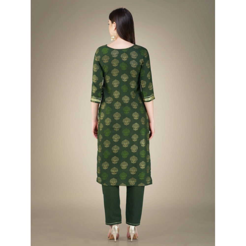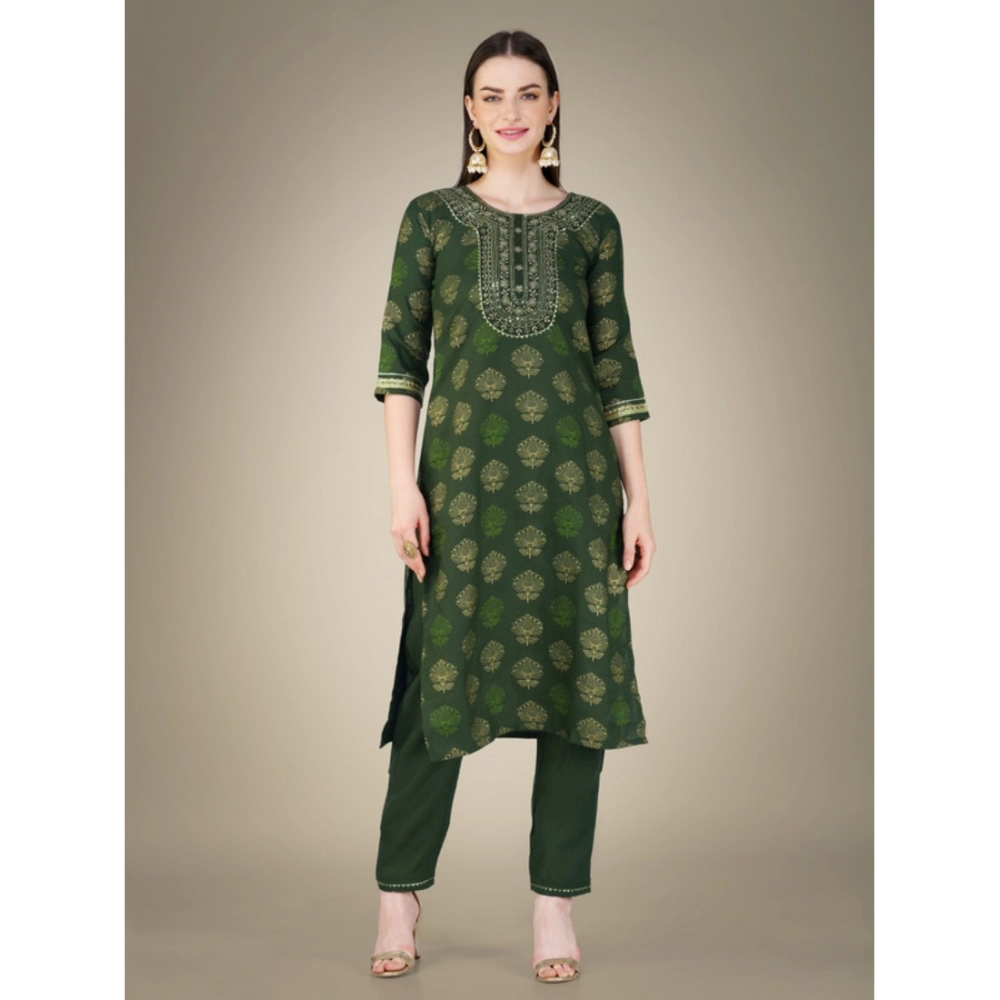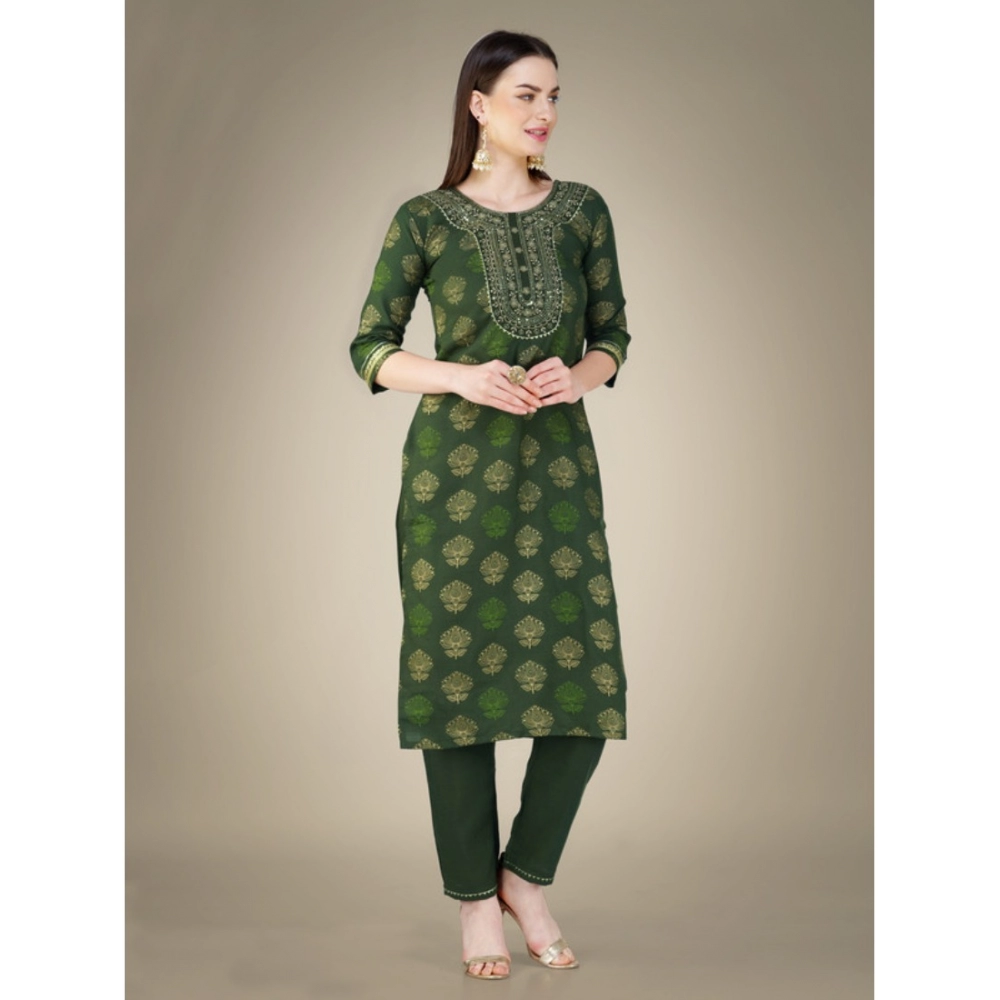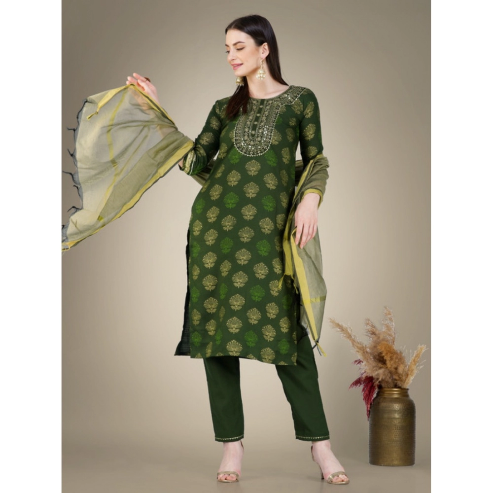 Women’s Casual 3-4 th Sleeve Embroidery Cotton Kurti Pant Dupatta Set